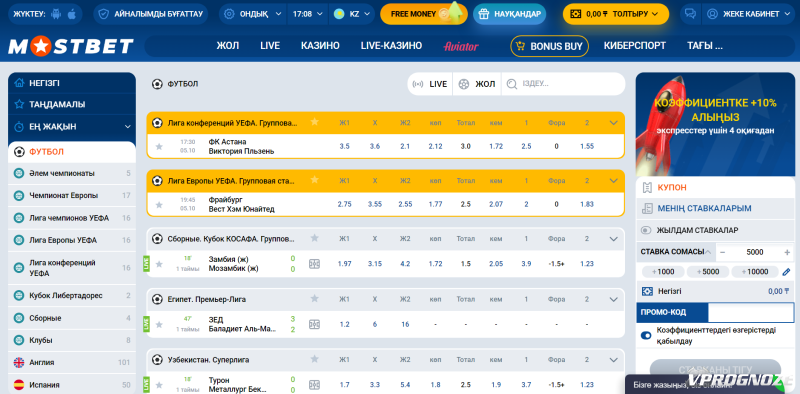 Для оформления экспресса в «Мостбет» нужно добавить в купон не менее 2 исходов: