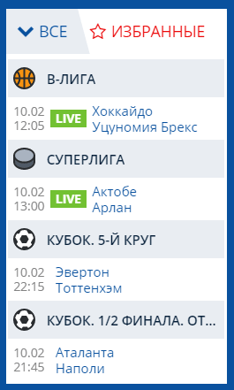 Популярные поединки размещены во вкладке «Главная». Навигация по линии происходит во вкладке «Спорт».