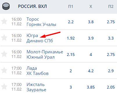 В списке слева кликните на вид спорта. Например, хоккей. В выпадающем меню выберите страну и чемпионат. Допустим, Россия, ВХЛ.