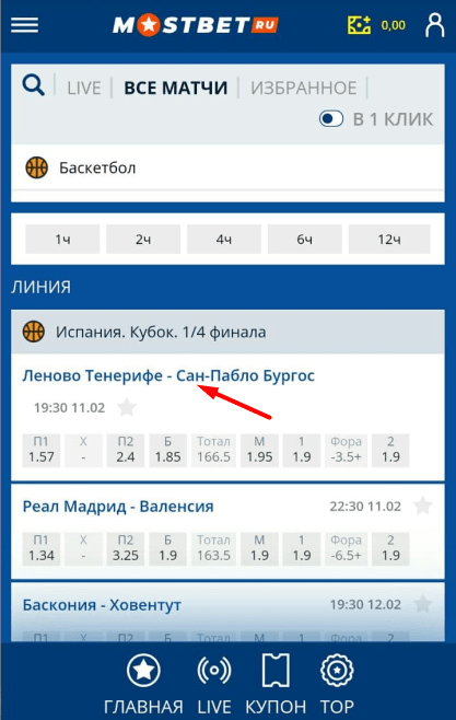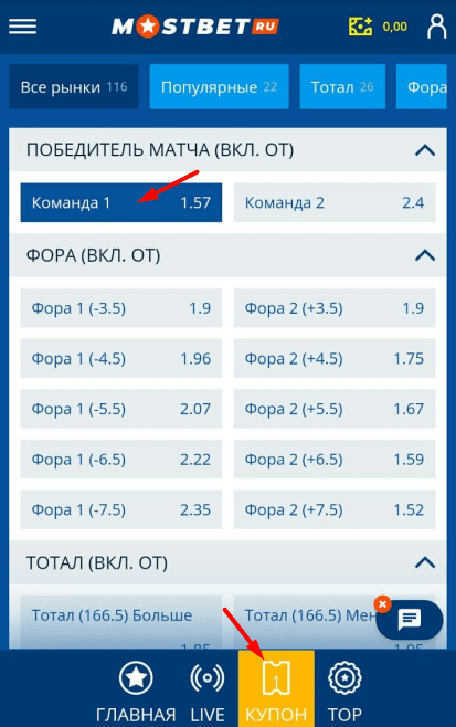 Теперь рассмотрим процесс оформления ставки, а потом – разберемся, как выиграть в Мостбет.