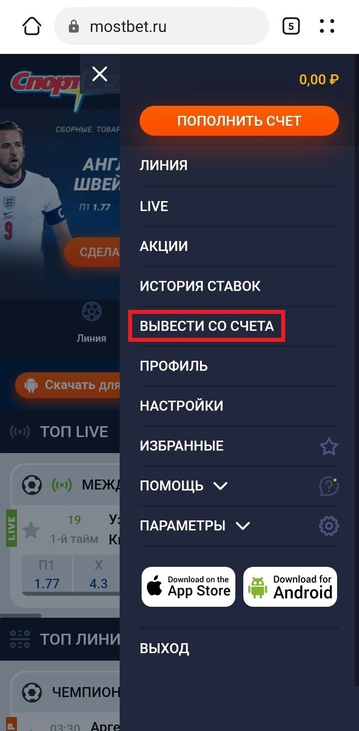 Как вывести средства с БК «СпортБет» (Mostbet)