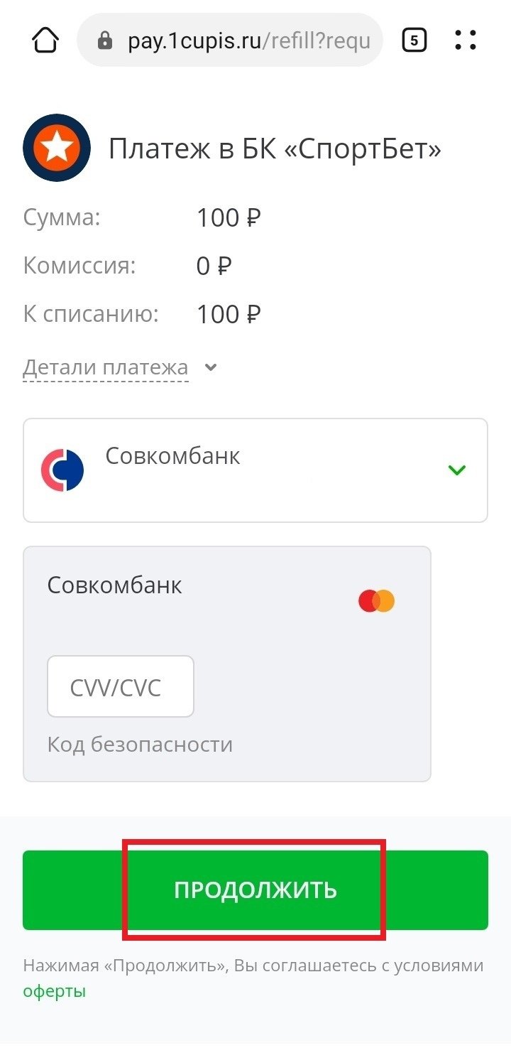 Подтверждение вывода в SportBet